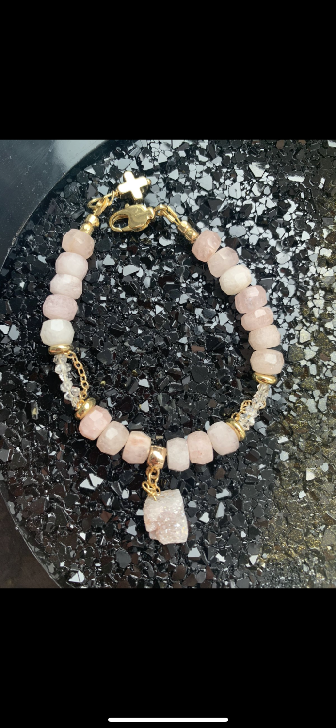 Друза Кварца с розовым рисунком на одной из граней, на цепочке + подвеска в виде месяца |