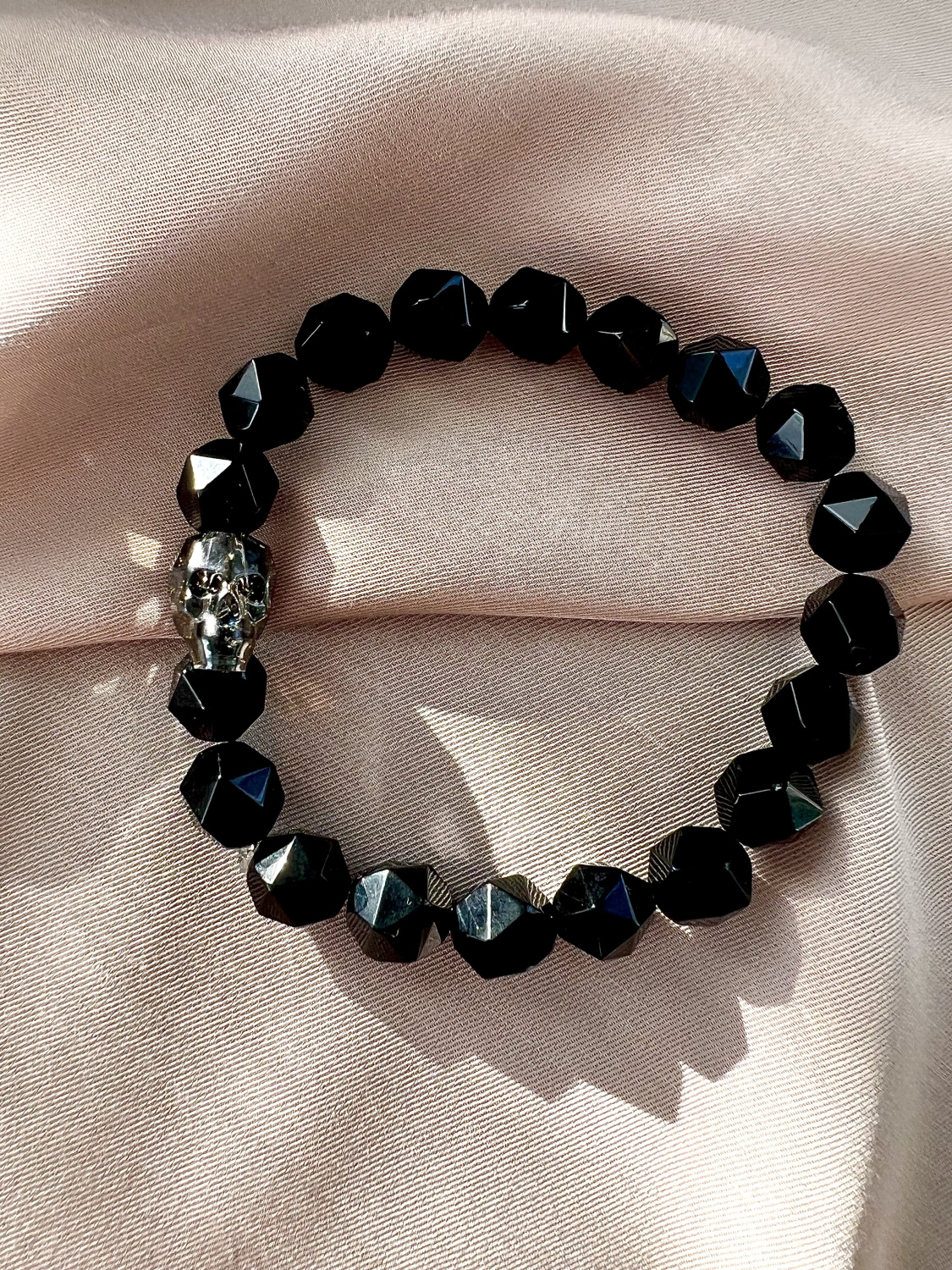 Кристалл Сваровски (Swarovski) в виде черепа стального цвета с отливом.