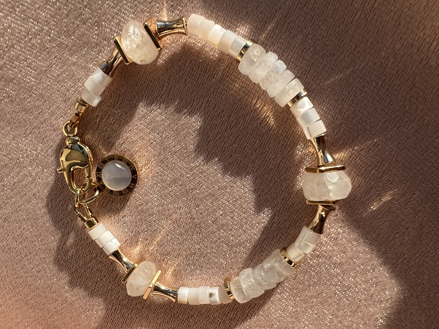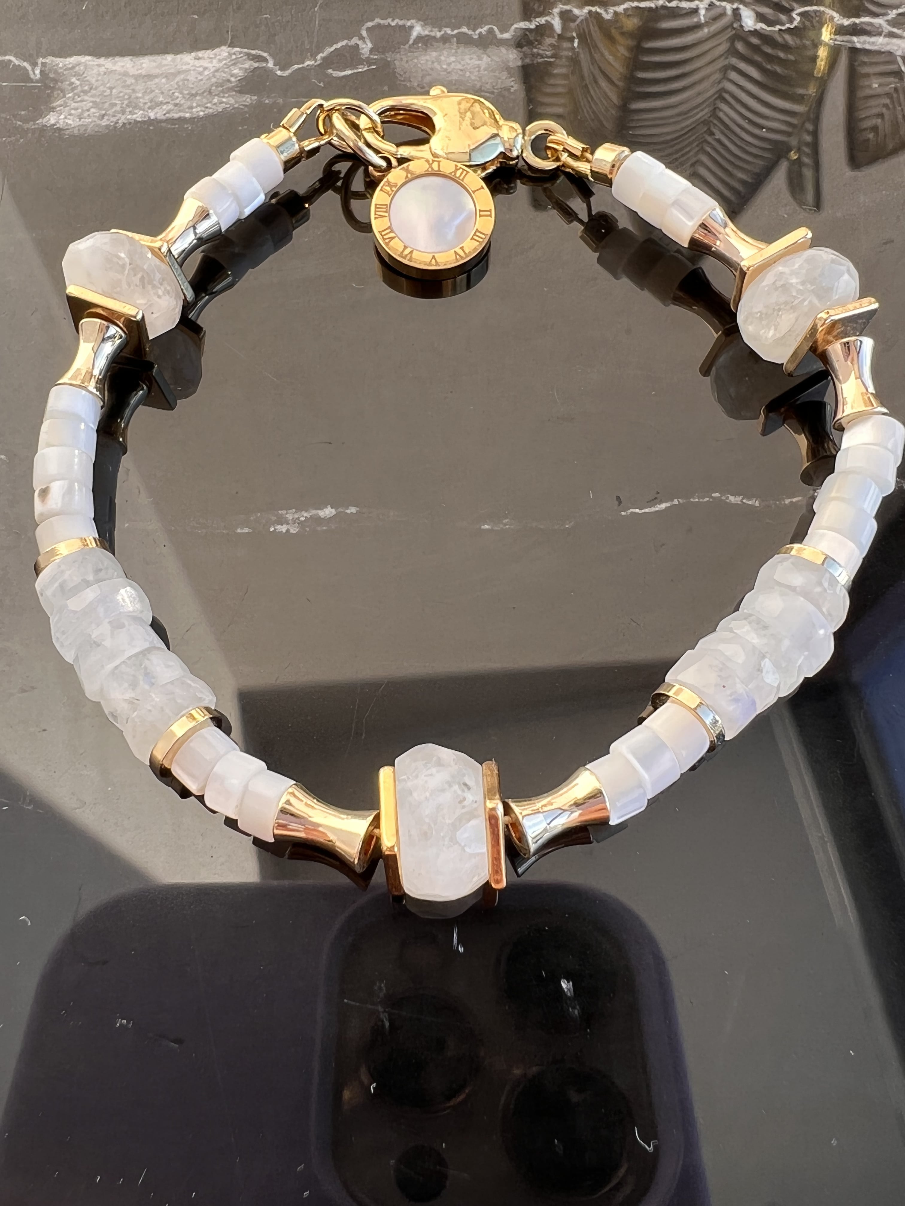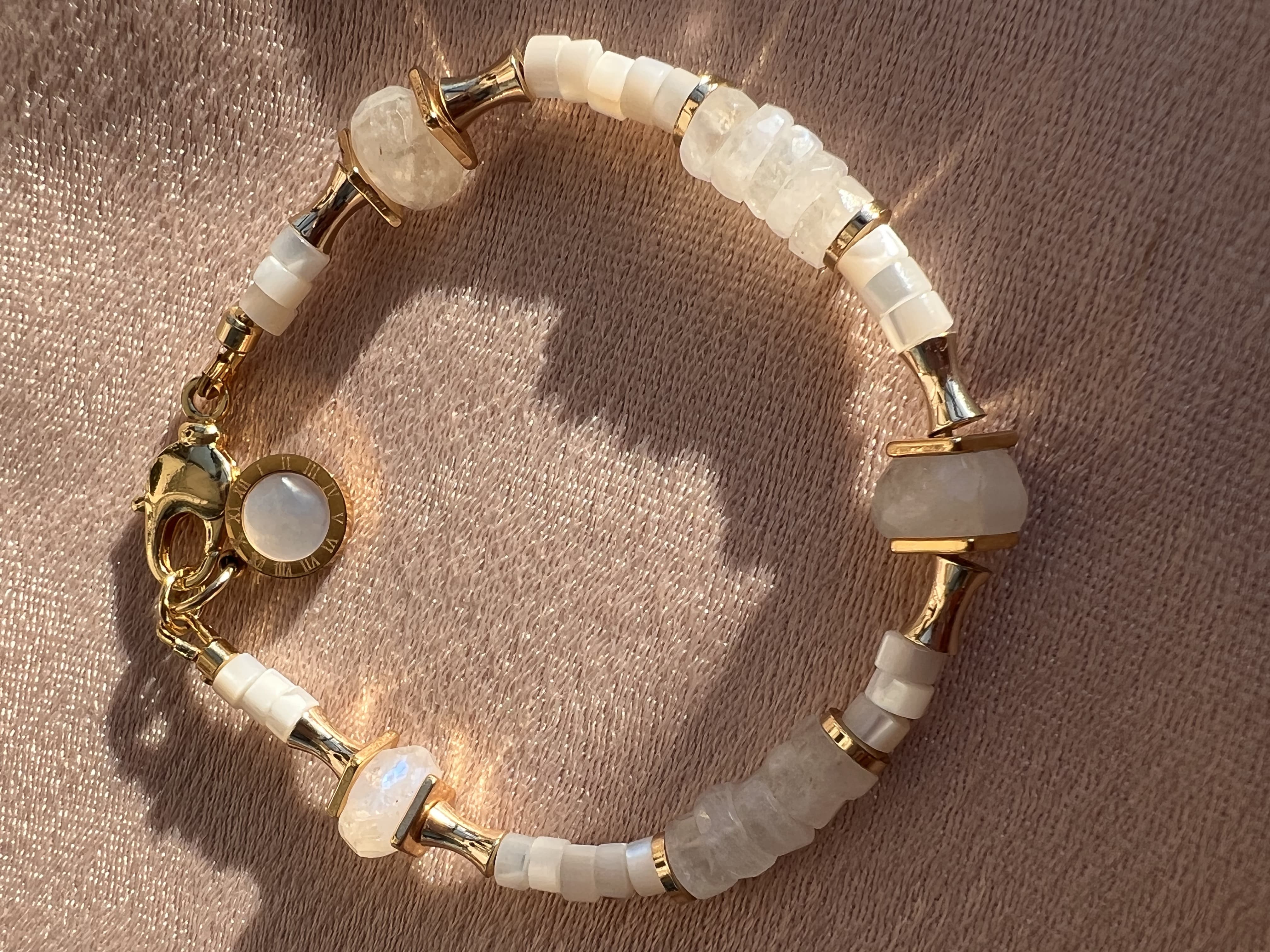 —Браслет "Греция" из Лунного Камня, Перламутра.