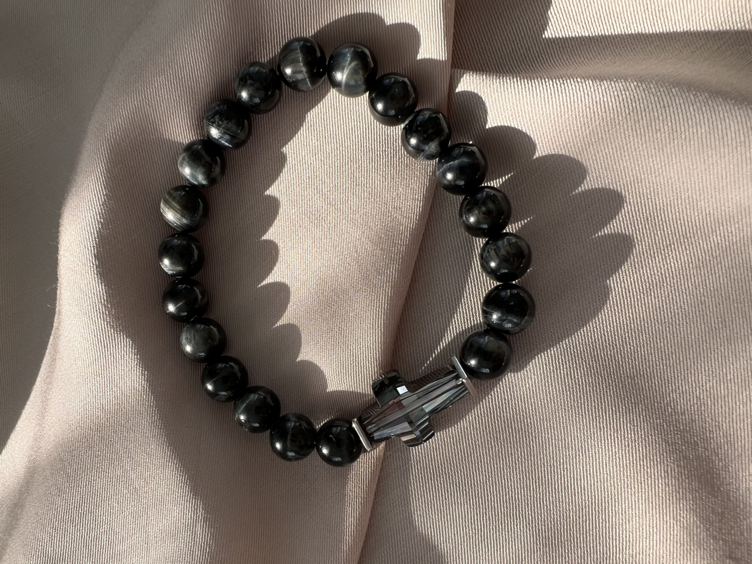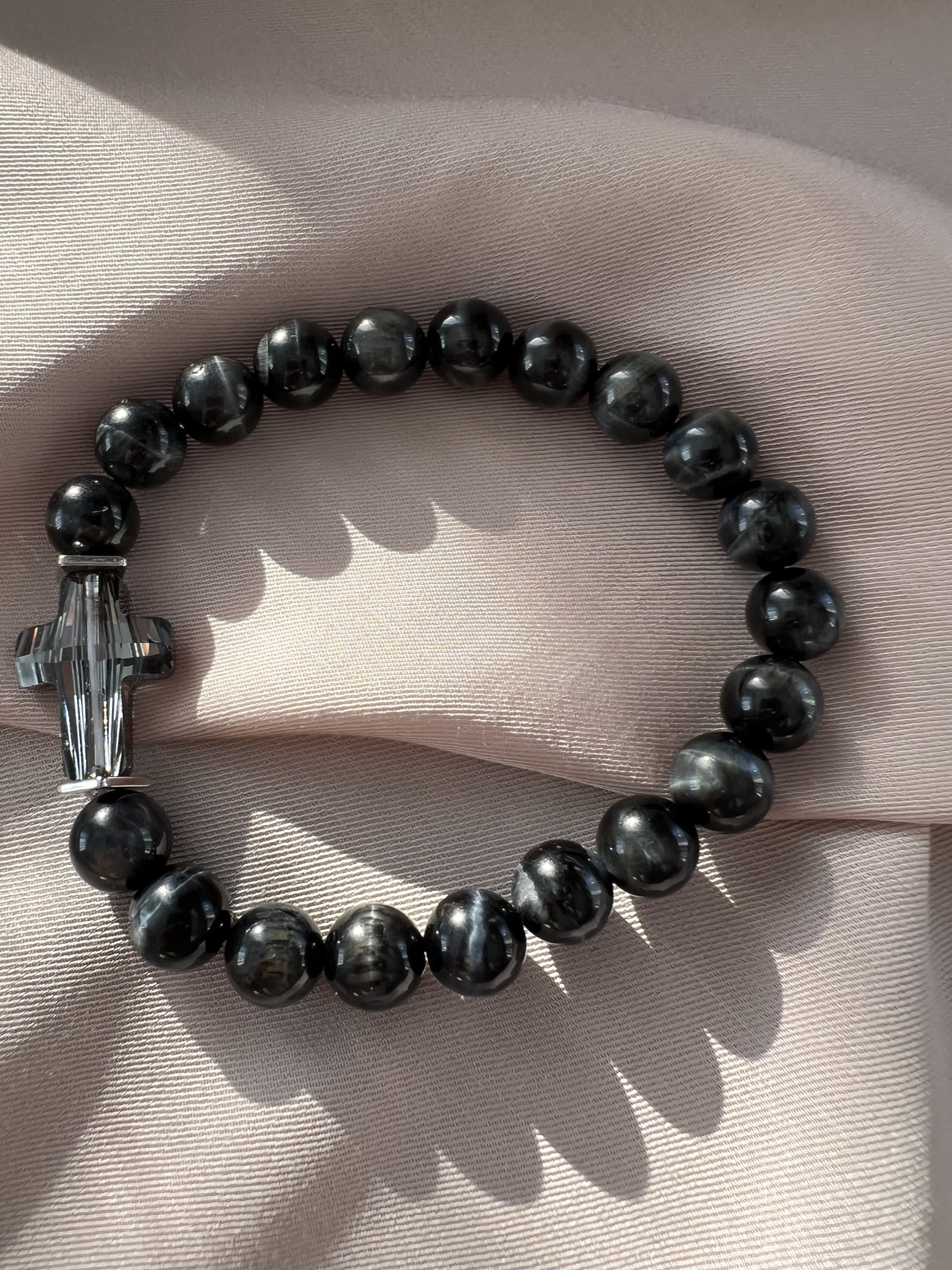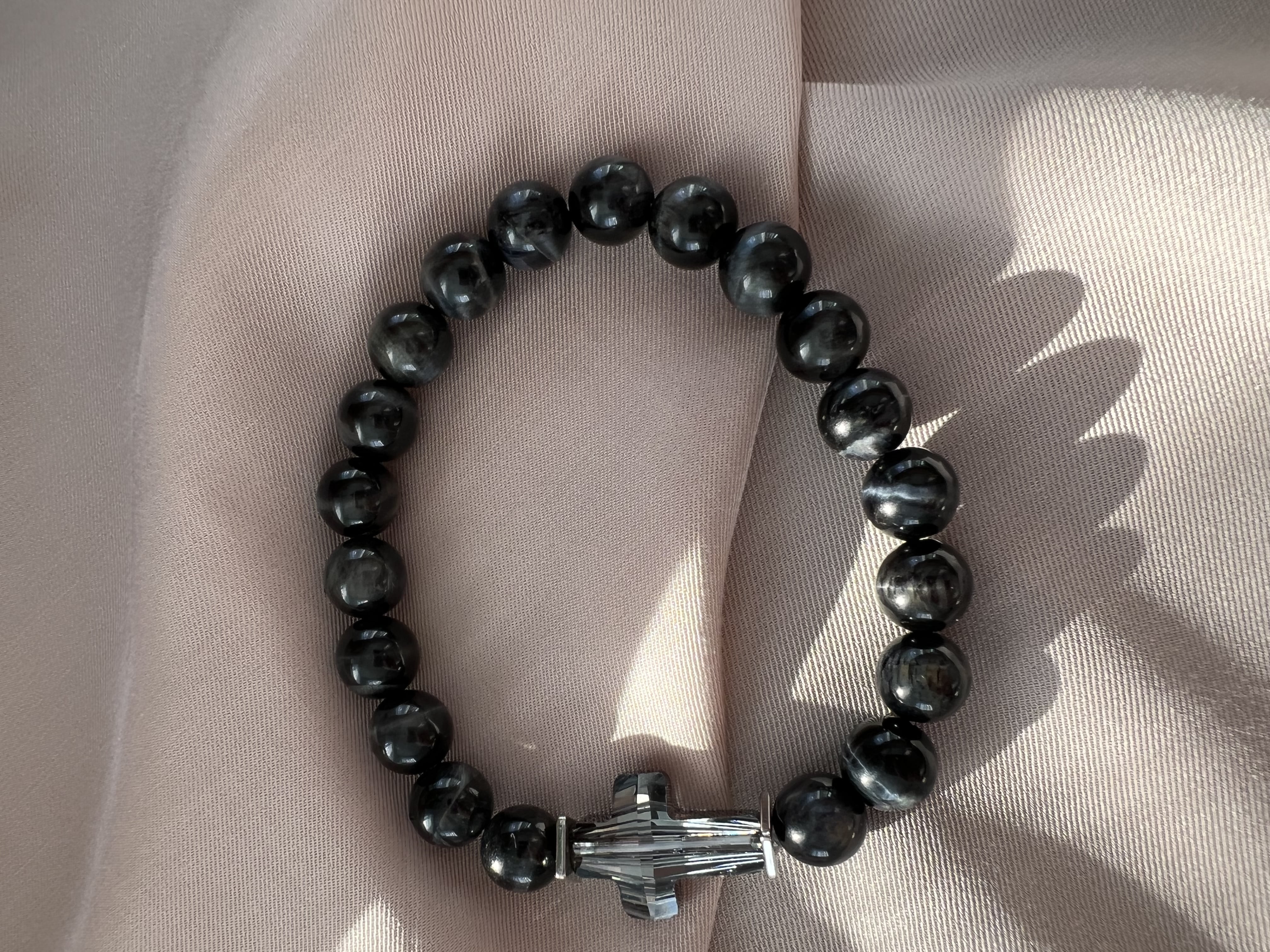 Кристалл Сваровски (Swarovski) в виде креста стального цвета с отливом.