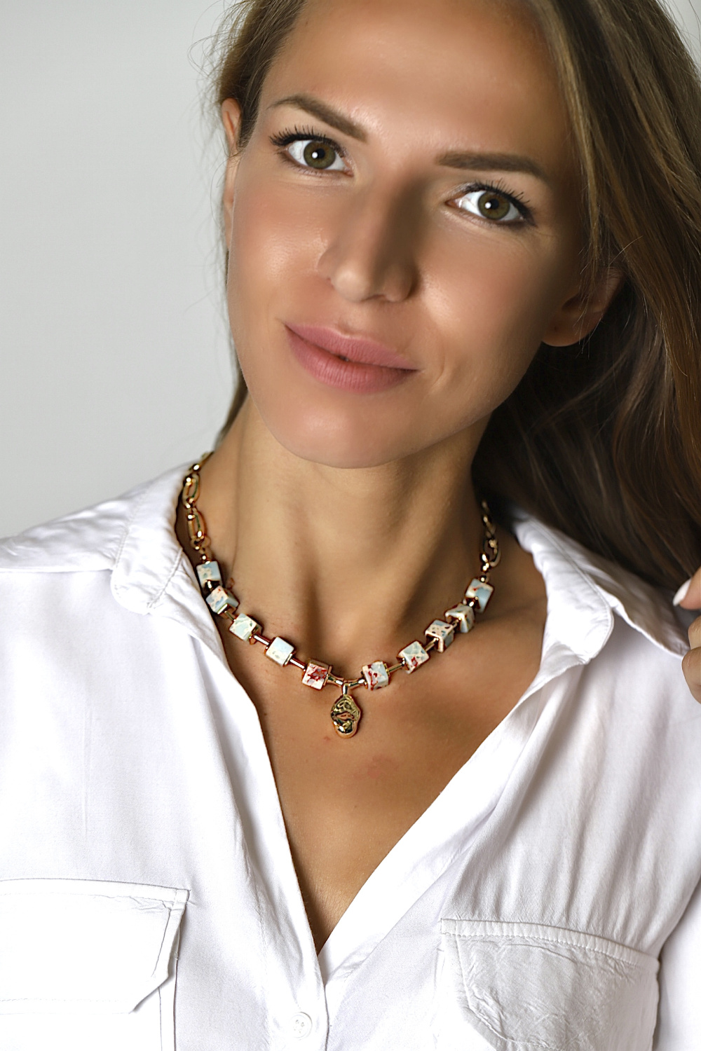 из латуни с покрытием из золота 18К в фотрме барочного жемчуга.