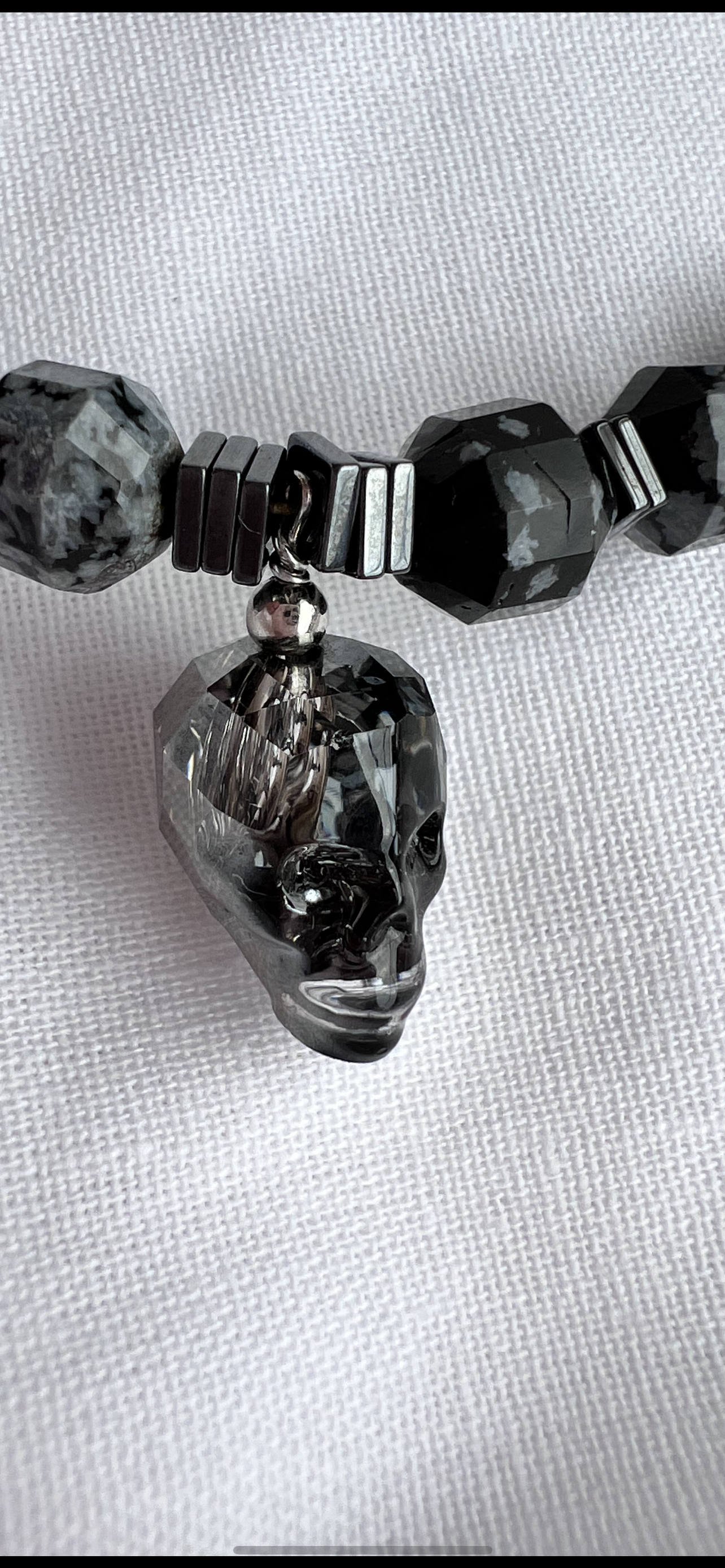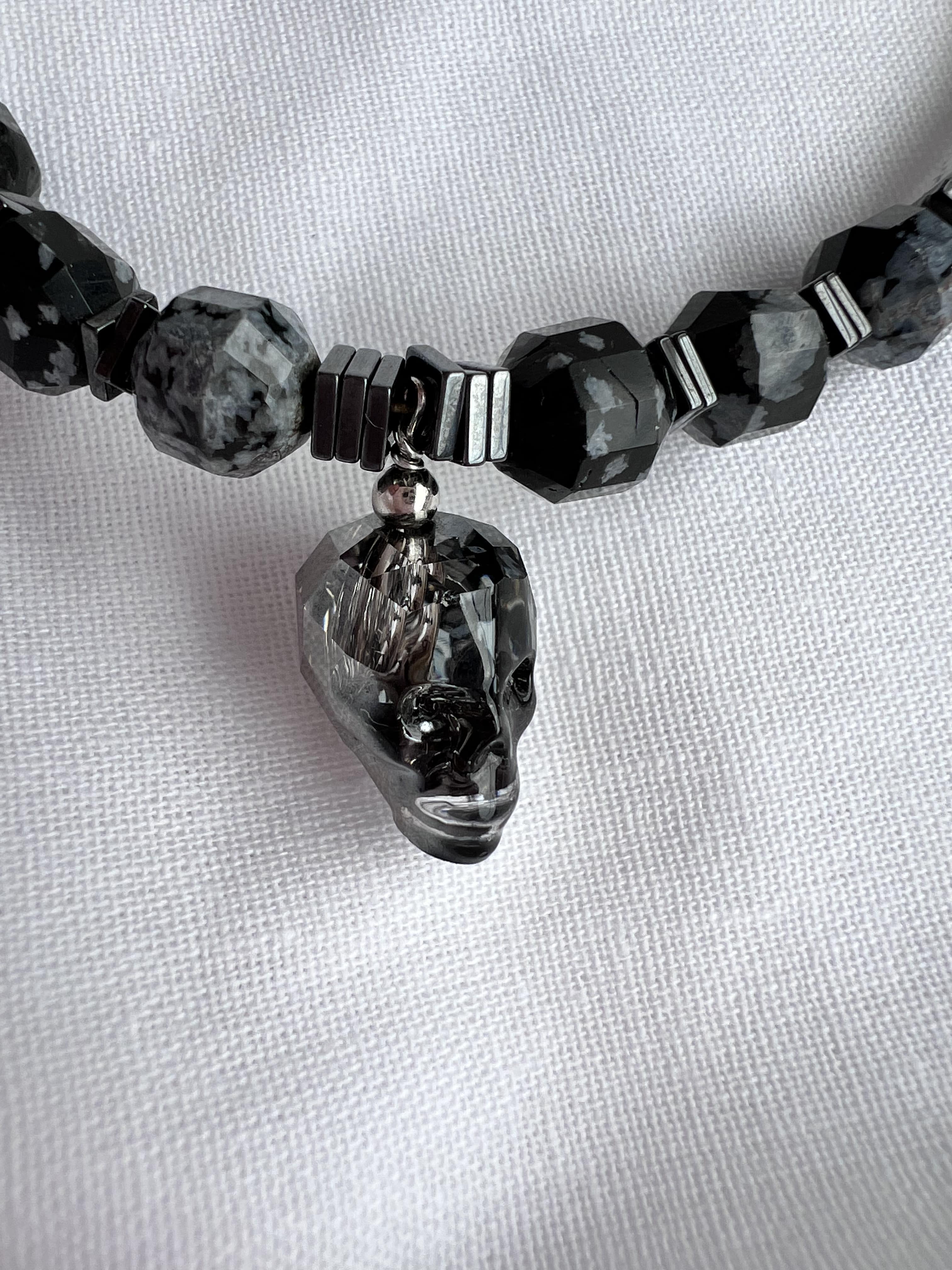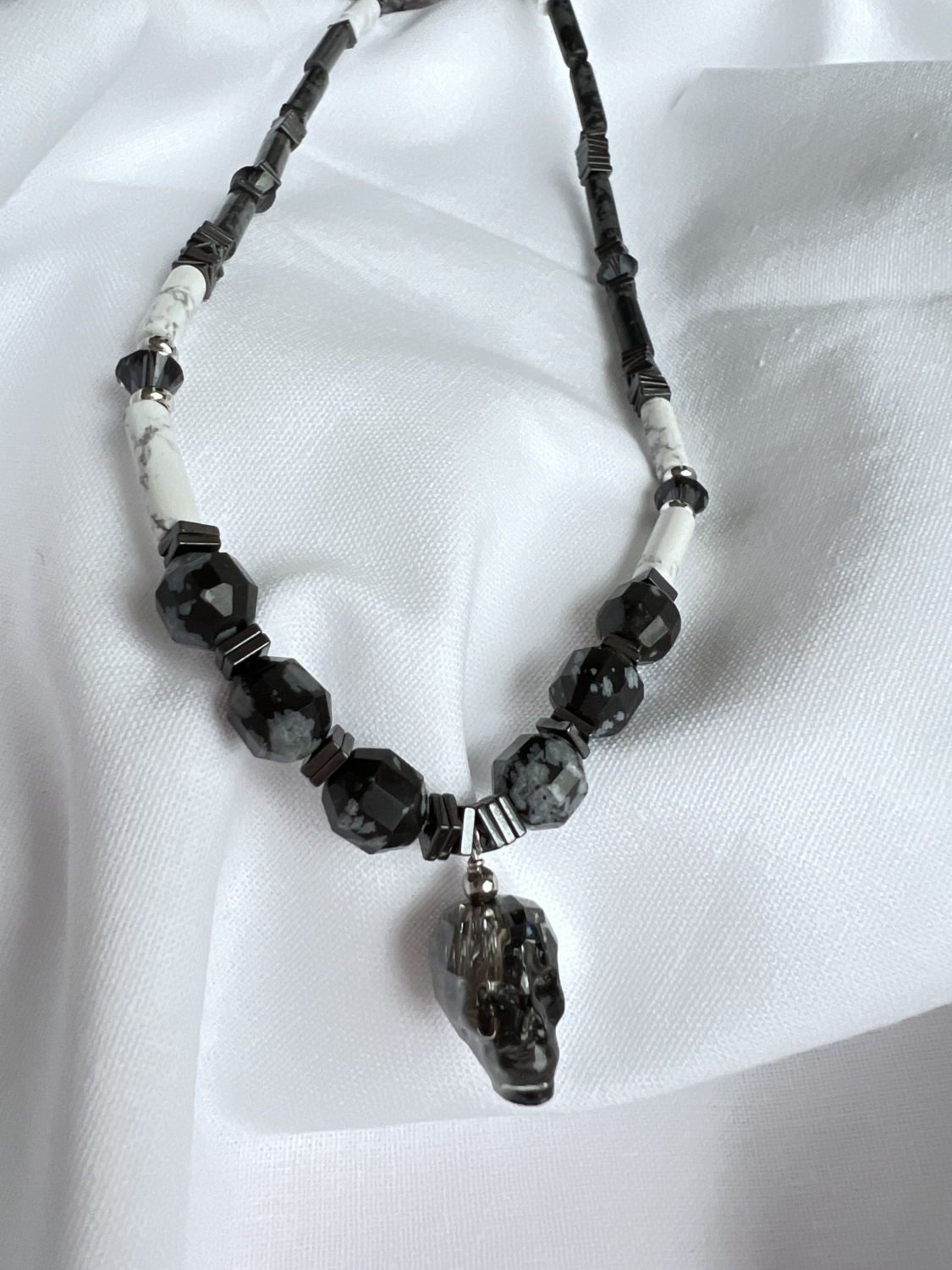 Снежный Обсидиан, Кахолонг, кристаллы Сваровски (Swarovski)