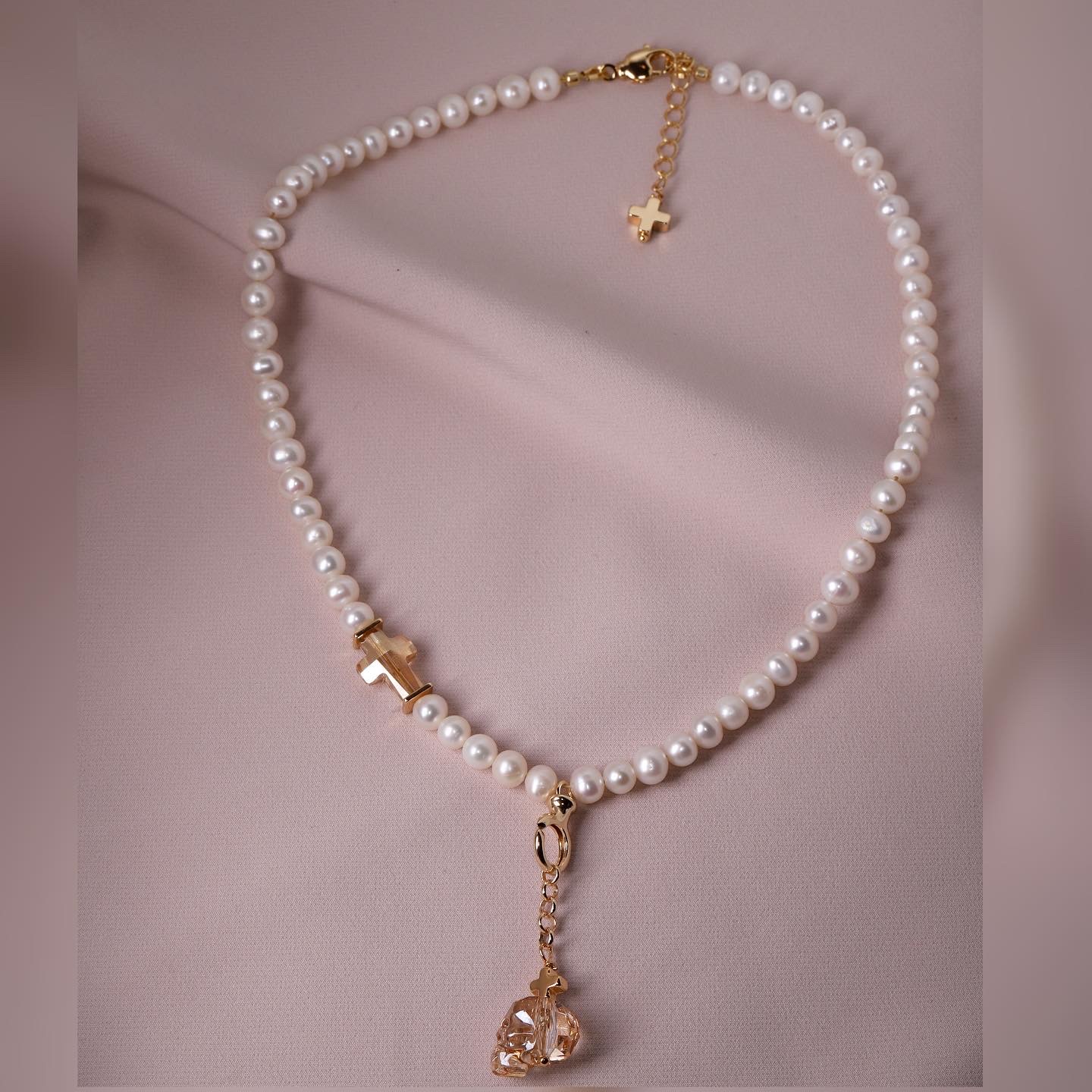 —Колье жемчуг череп и крест Swarowski